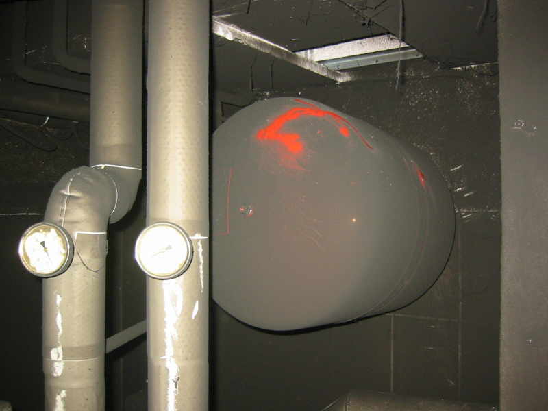 Zum Glück ist der Aufstellraum für Feuerstätten (auch Heizraum genannt) durch eine feuerhemmende Tür zum Treppenhaus versehen. Der Betreiber hat nach eigener Aussage die Tür im allgemeinen immer offen stehen. An diesem Tag/Nacht war die Türe geschlossen. In der Nacht hat der Betreiber seltsame
