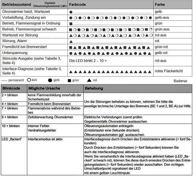 Die neuen digitalen Feuerungsautomaten zeigen die entsprechenden Fehler durch Blinksignale an. Der Entstörtaster (Entstörungsknopf) ist das Bedienelement für die Entriegelung und die Aktivierung/Deaktivierung der Diagnose. Die mehrfarbige LED (gelb, grün, rot) zeigt die jeweiligen Betriebszustände an. Nach einer Störabschaltung leuchtet die LED am Feuerungsautomaten "rot" auf. Über einen "Blinkcode"
