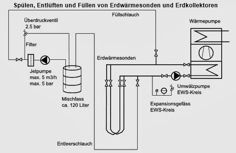 mit eingebunden werden. Die einzelnen Kreise der Erdwärmekollektoren haben eine Rohrlänge zwischen