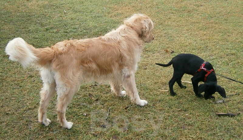 Mit Totti hat Puschel super getobt. Mit seinen kurzen Beinen war der Kleine immer schneller