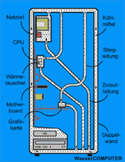 die Bauteile des Netzteils kühlt das Wasser durch eine dünne