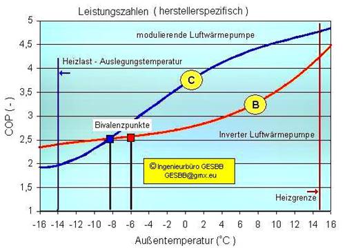 R134a und R290 erreichbar). Bei dem Heizbetrieb sollten 35 °C möglichst nicht überschritten werden, was Niedertemperaturheizsysteme (Fußboden-, Wand- und/oder Deckenheizungen) voraussetzt. |